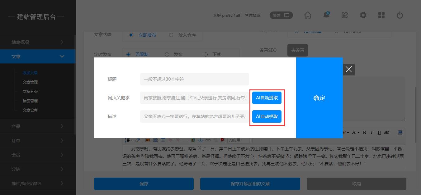 提示:必须要先填写文章详情内容,才能使用AI提取SEO功能,AI使用次数是根据免费的额度来定,超过需要单独购买